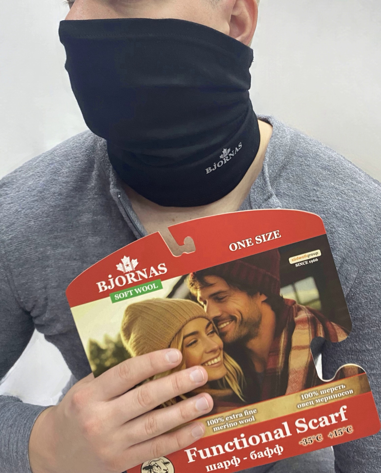 ШАРФ-БАФФ "ТРАНСФОРМЕР" BJORNAS SOFT WOOL 100% МЕРИНОС (+15°C-35°С) BLACK