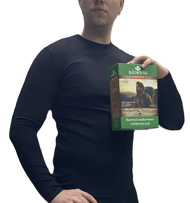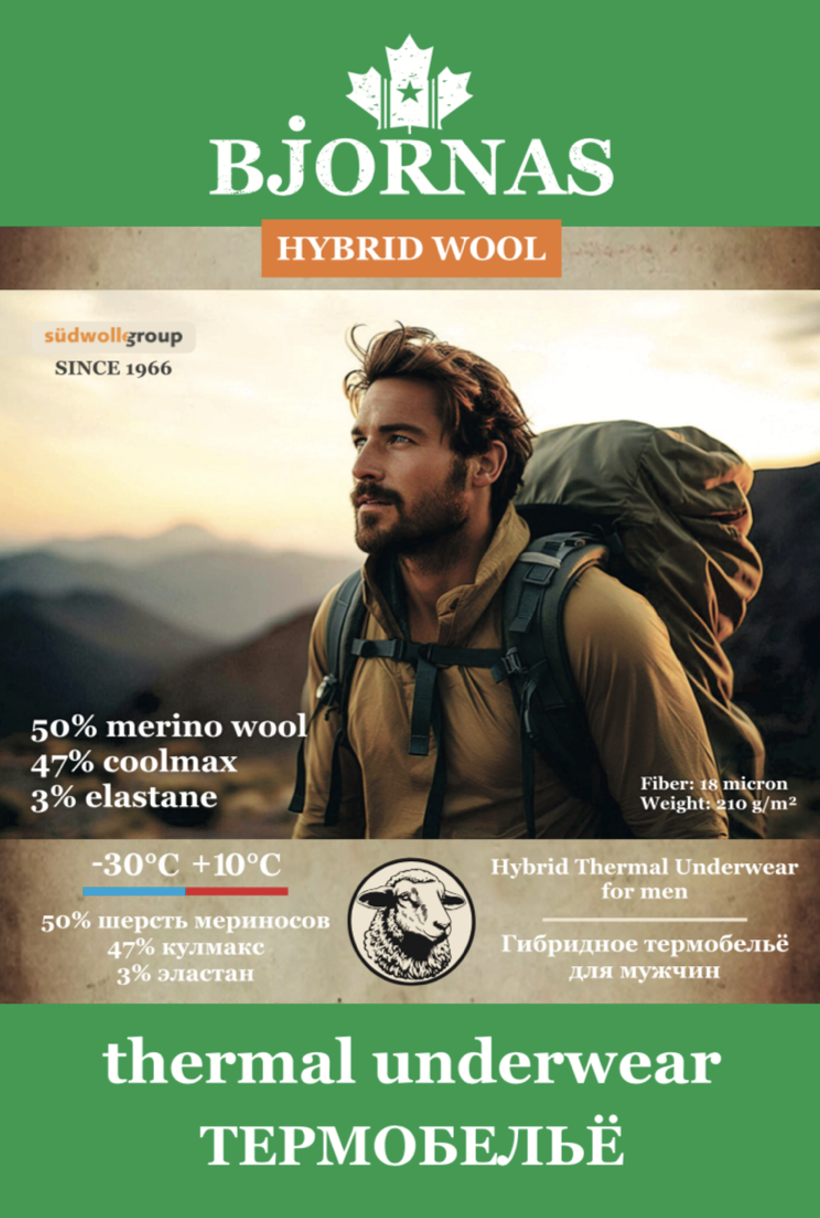 ТЕРМОЛОНГСЛИВ ДВУХСЛОЙНЫЙ МУЖСКОЙ BJORNAS "HYBRID WOOL" CANADA ГИБРИД (+10⁰С -30⁰С) ДЛЯ АКТИВНЫХ МУЖЧИН