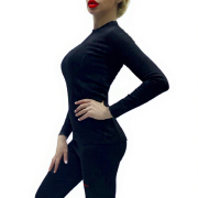 Супер-эластичная структура ткани, эргономичный крой для удобства во время движения, комфортный вырез горловины и удлиненная анатомическая спинка у лонгслива, манжеты на запястьях и щиколотках с мягкой фиксацией, втачная поясная резинка на леггинсах, высокая удобная посадка на талии.