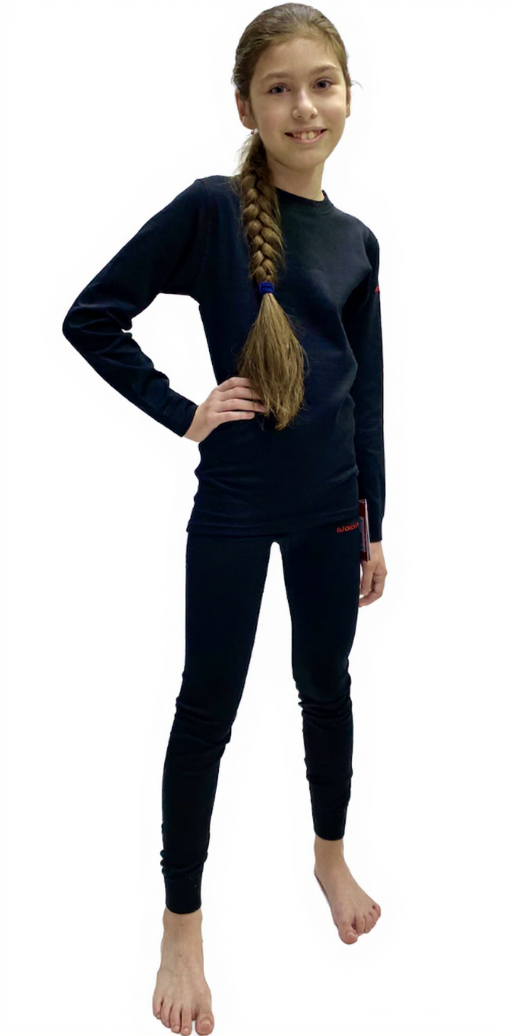 ГИБРИДНЫЙ ДВУХСЛОЙНЫЙ КОМПЛЕКТ ДЛЯ ДЕВОЧКИ ПОДРОСТКА BJORNAS "HYBRID WOOL" CANADA MERINO+COOLMAX (BLACK)