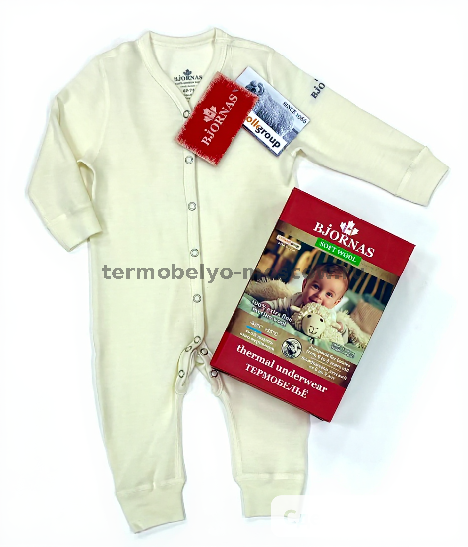 КОМБИНЕЗОН НА КНОПКАХ BJORNAS "SOFT WOOL" CANADA 100% ШЕРСТЬ МЕРИНОСА (MILKY)