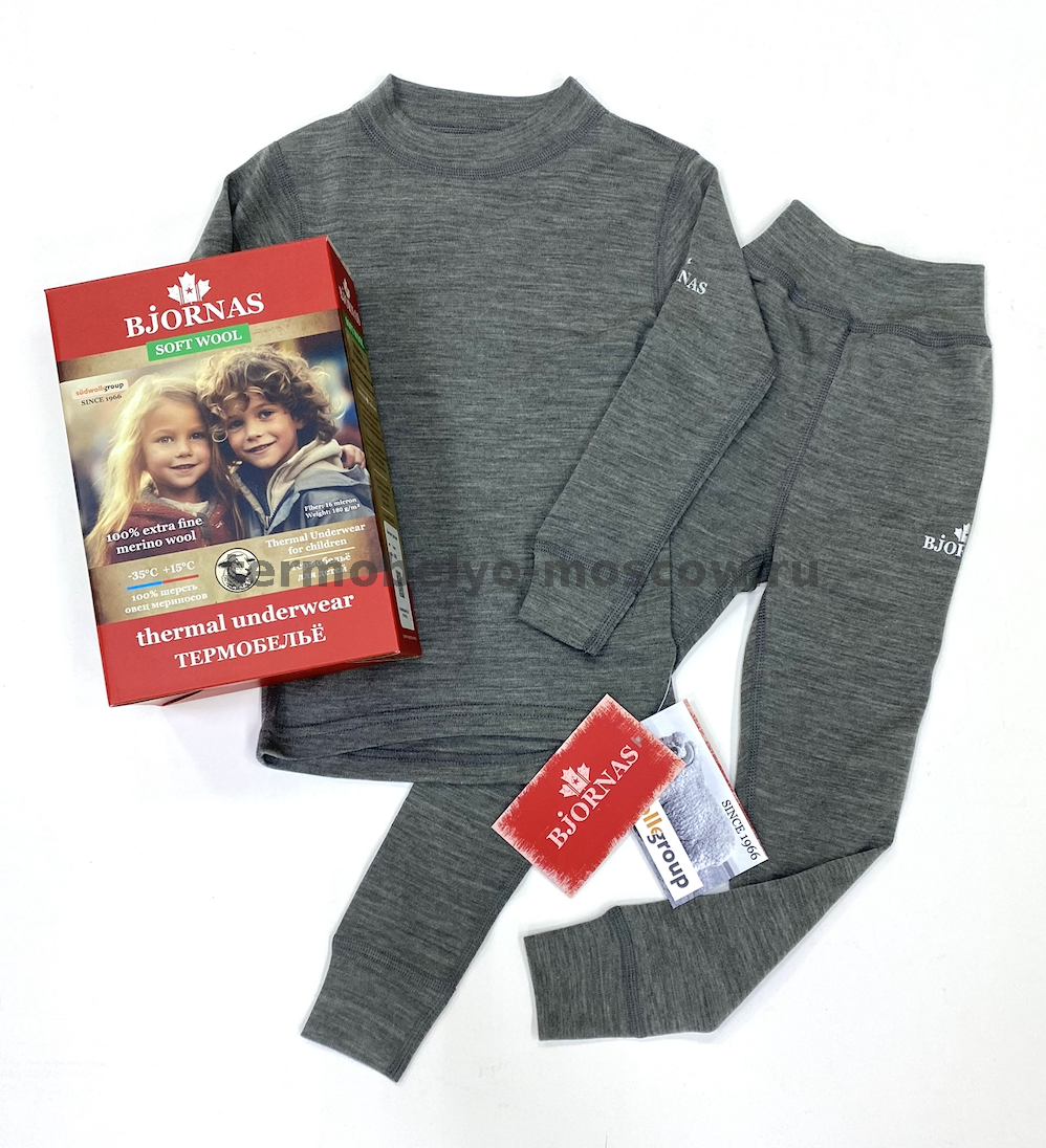 ТЕРМОКОМПЛЕКТ ДЛЯ МАЛЫШЕЙ BJORNAS "SOFT WOOL" CANADA 100% ШЕРСТЬ МЕРИНОСА (GREY)