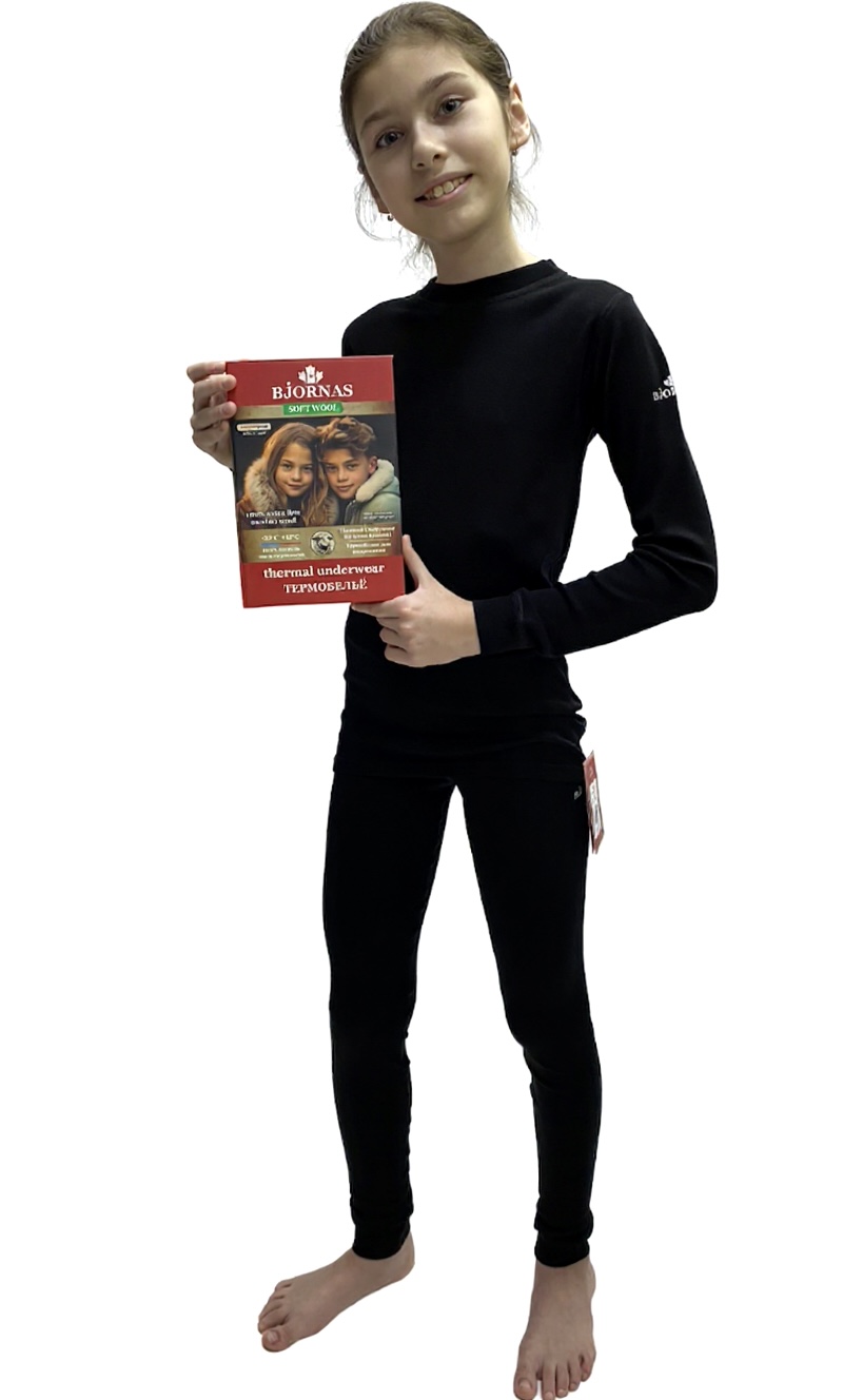 ТЕРМОКОМПЛЕКТ ДЛЯ ДЕВОЧКИ ПОДРОСТКА НА КАЖДЫЙ ДЕНЬ BJORNAS "SOFT WOOL" CANADA 100% ШЕРСТЬ МЕРИНОСА (BLACK)