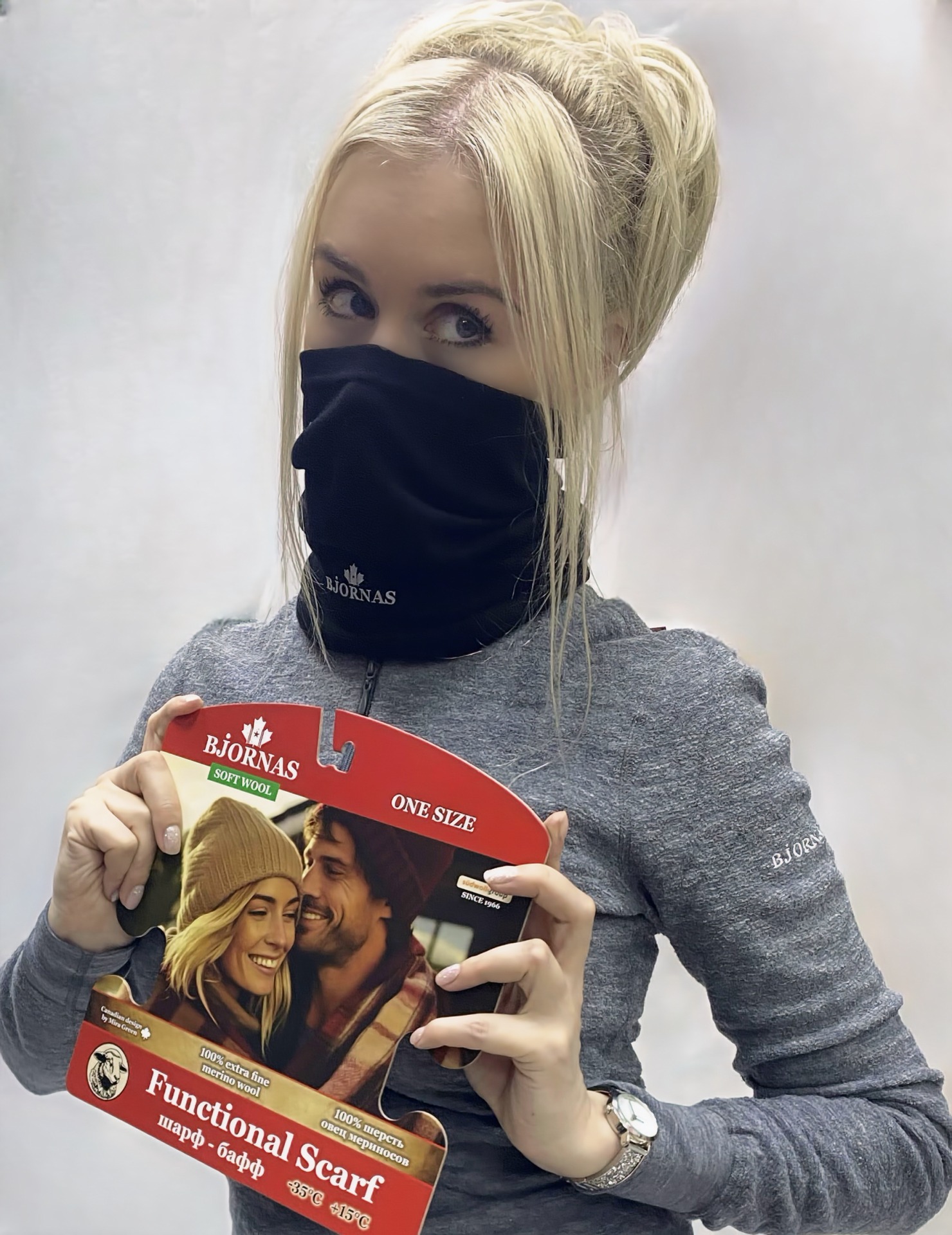 Магазин термобелья. Купить теплый шарф-бафф трансформер на шею снуд из шерсти мериносов Bjornas Soft Merino Wool.