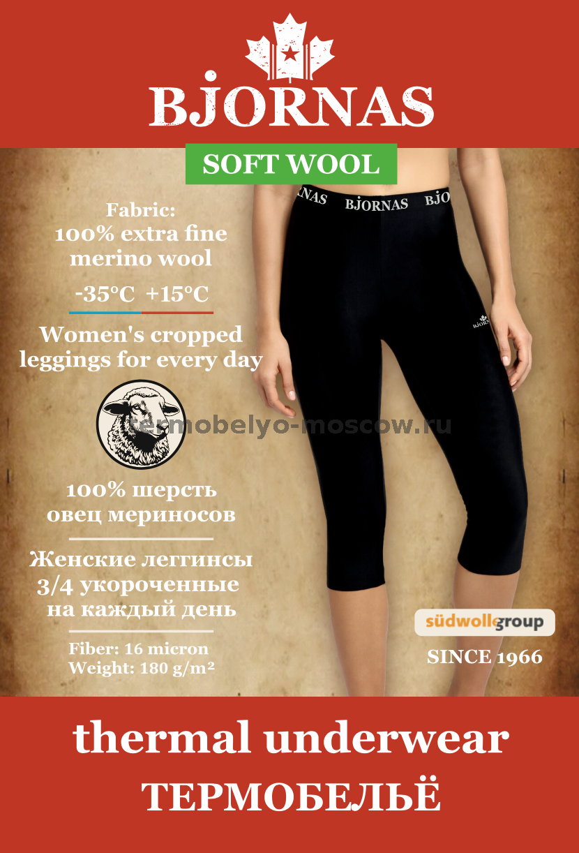 ТЕРМОЛЕГГИНСЫ УКОРОЧЕННЫЕ 3/4 ЖЕНСКИЕ BJORNAS "SOFT WOOL" CANADA MERINO 100% МЕРИНОС (+15⁰С -35⁰С) НА КАЖДЫЙ ДЕНЬ