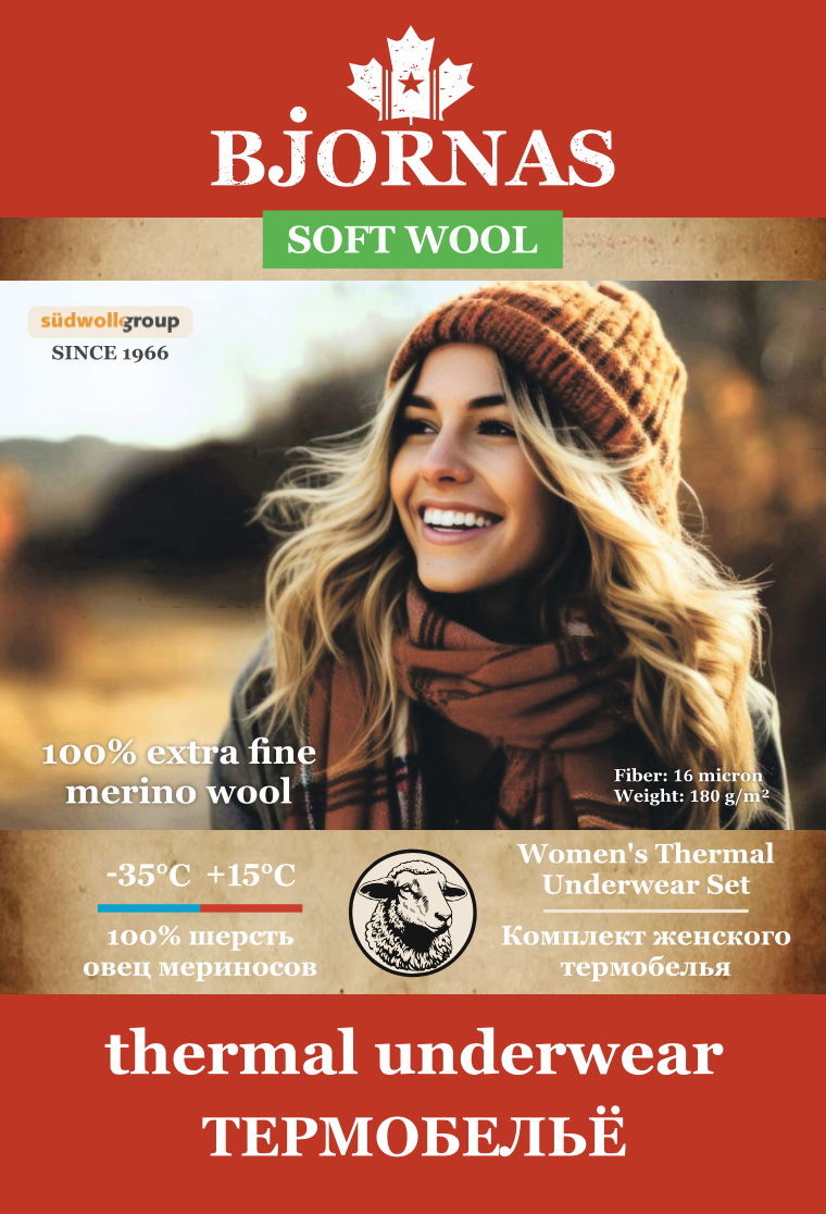 ТЕРМОКОМПЛЕКТ ЖЕНСКИЙ BJORNAS "SOFT WOOL" CANADA MERINO 100% МЕРИНОС (+15⁰С -35⁰С) НА КАЖДЫЙ ДЕНЬ (MILKY)