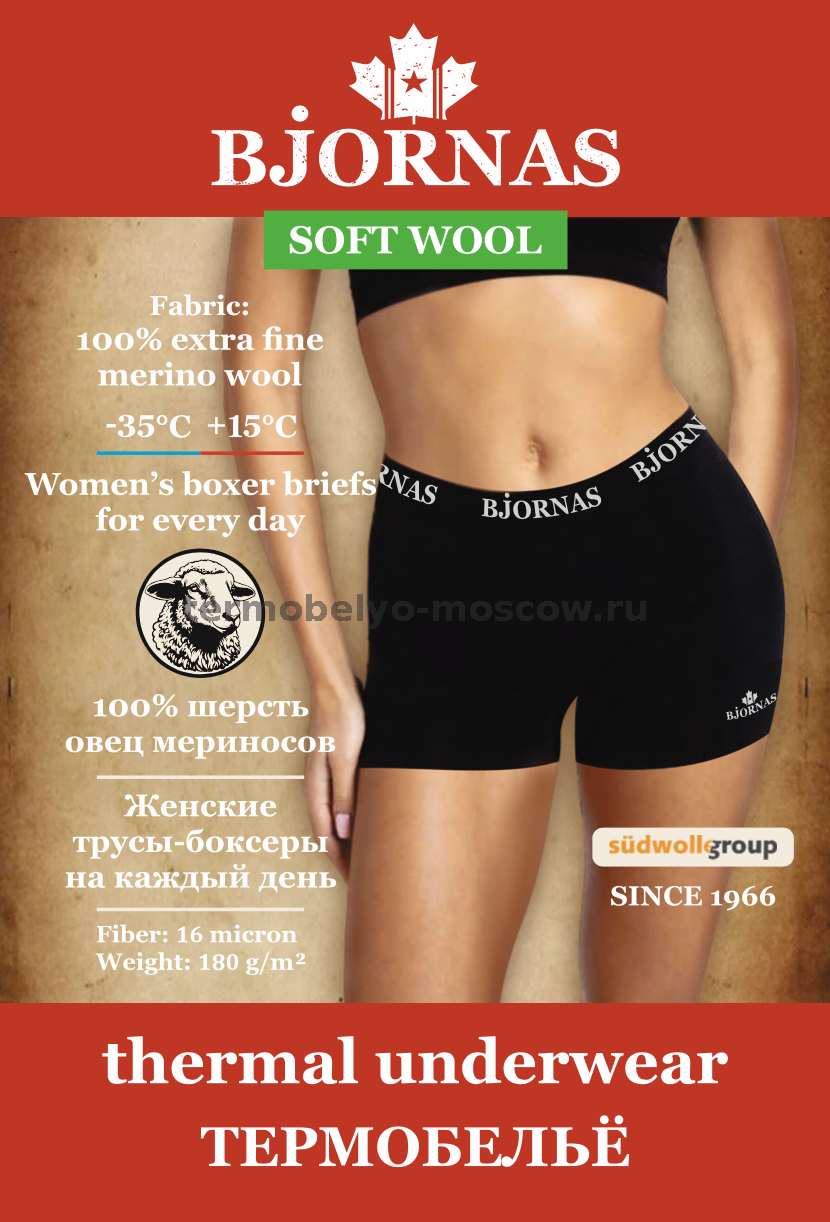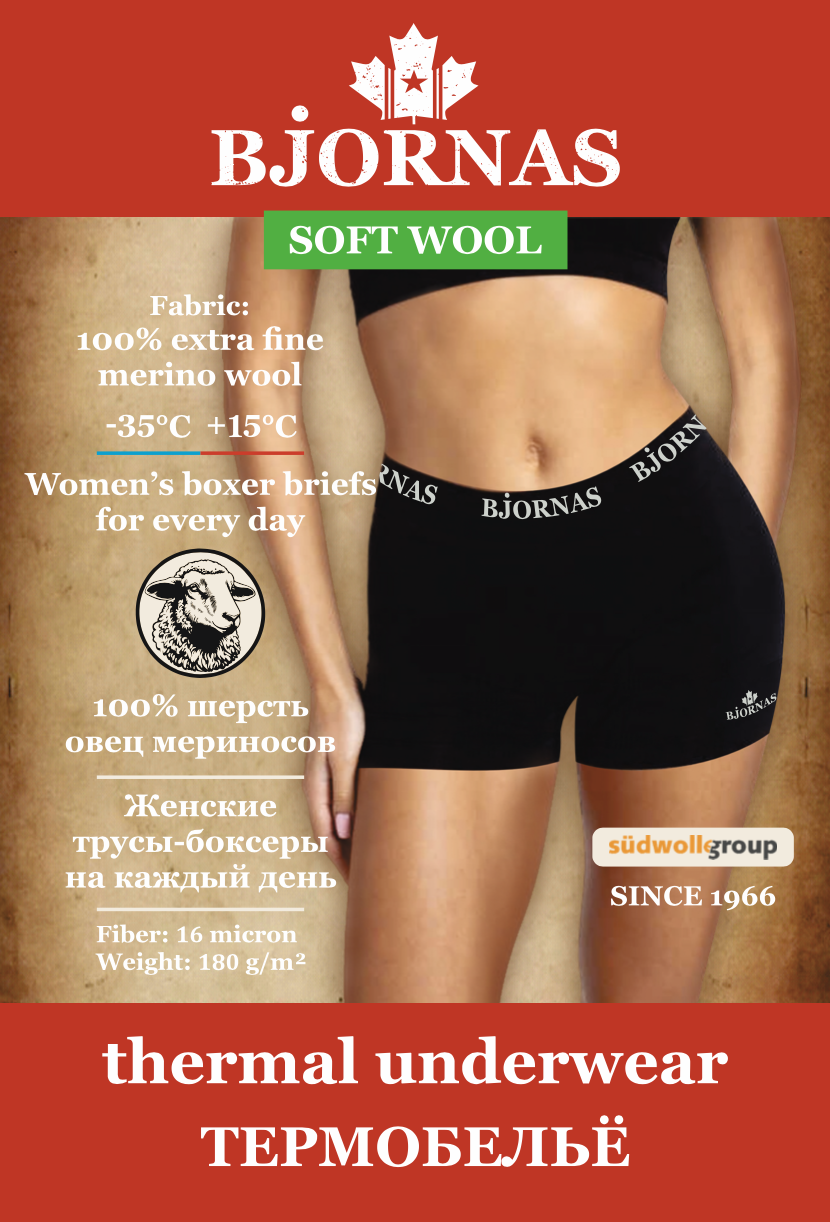 Тонкие и теплые женские термошортики-боксеры от канадского бренда BJORNAS (Бйорнас) линейки "Soft Wool" для повседневного использования. Самое комфортное и всегда востребованное мультисезонное городское термобелье на каждый день. Трусики-шортики удобно использовать под юбку и брюки, в них можно оставаться в помещении, не боясь перегрева, также, они очень приятны к телу. Полотно боксеров изготовлено из высококачественной флагманской самой мягкой 100% шерсти мериносовых овец Etra Fine Merino Wool от немецкого концерна Suedwolle Group. С вами всегда ощущение мягкого обволакивающего тепла и эффект "второй кожи", изделие быстро сохнет, работает в режиме резких перепадов температур: помещение—улица—транспорт.